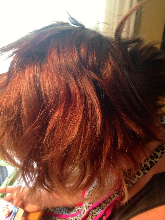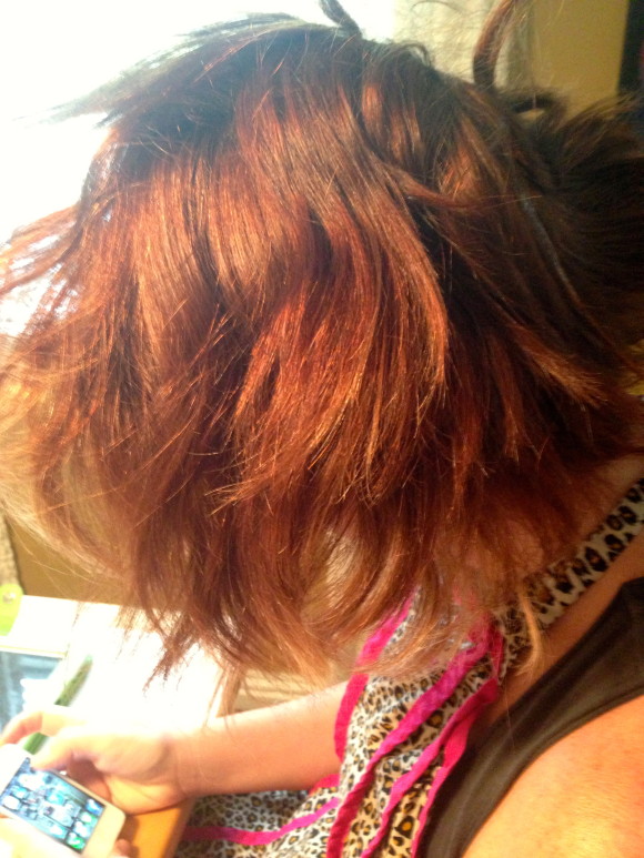 We went into this knowing that we would have to do this process twice. The first time, the Copper Red did lift her hair from a brown to a light red but it wasn’t evenly covered. We washed out the dye, blow dryed her hair and started the next step. From here, we used the Red Hot color and applied it on her hair and left it on for about 30 minutes.