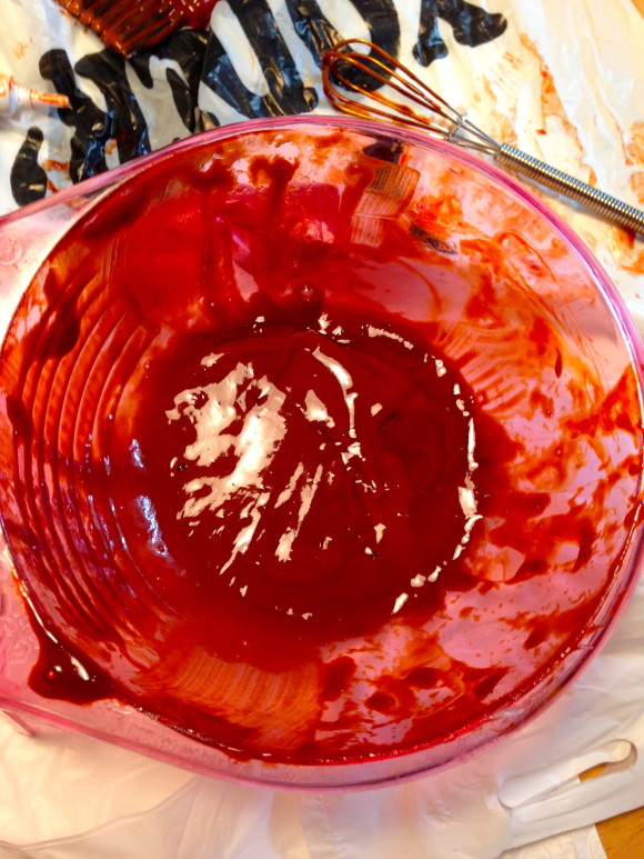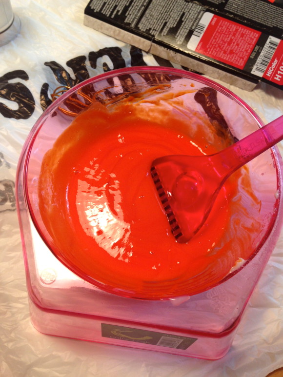 We started with Copper Red. Mixed it up in the bowl and it looked like what one person described as mayonnaise and hot sauce. Pretty accurate description if you ask me!