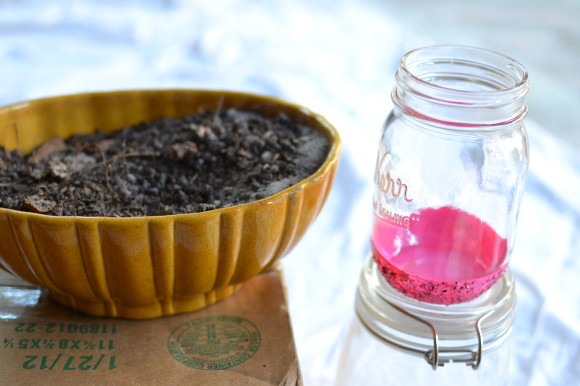 The project is pretty simple. Paint the jars first, let them dry and create your space. I created a dry/open-air terrarium because I am using succulents who prefer dry environments.