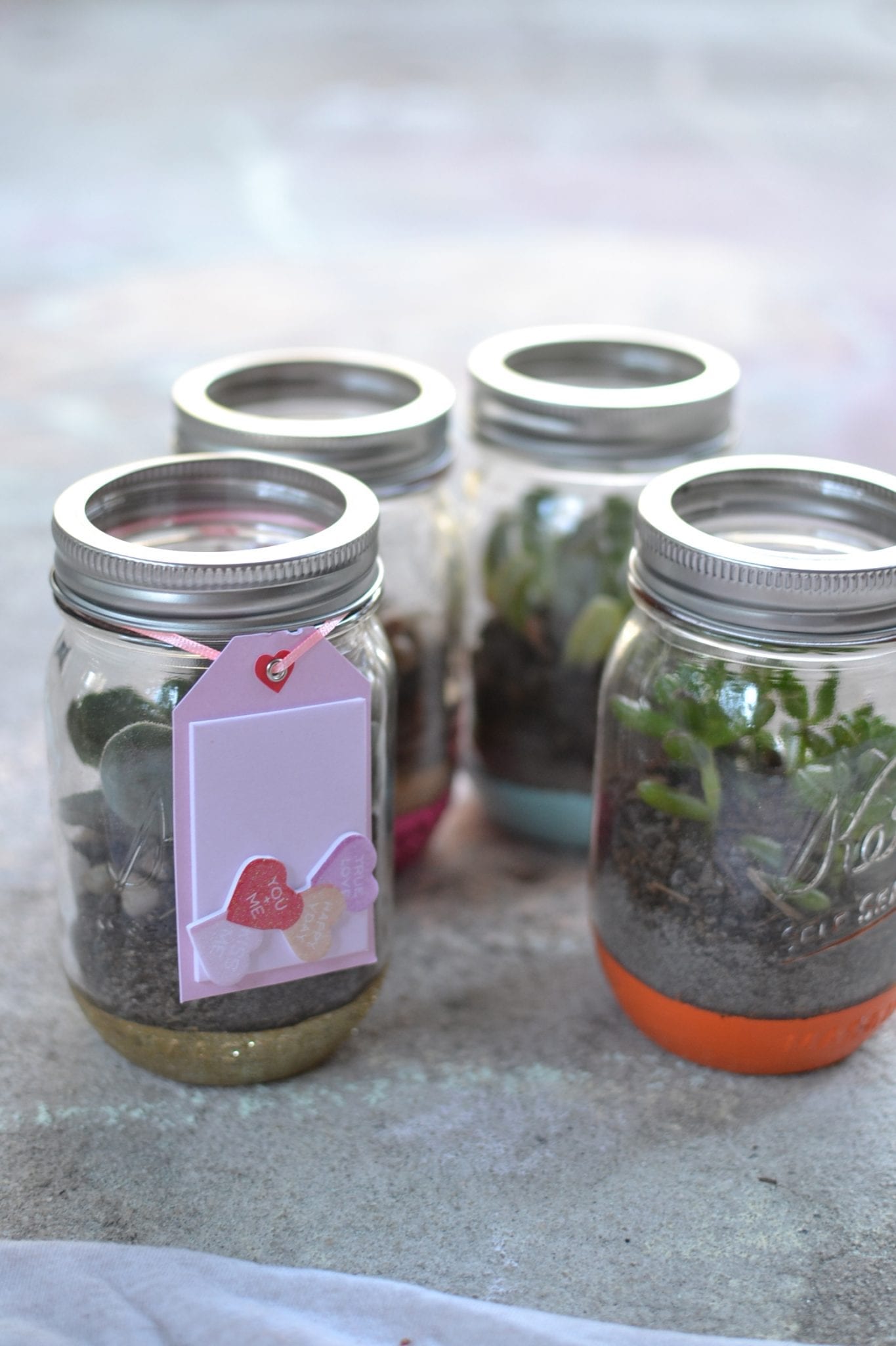 I got it! I decided to make Glittered Mini Mason Jar Terrariums.