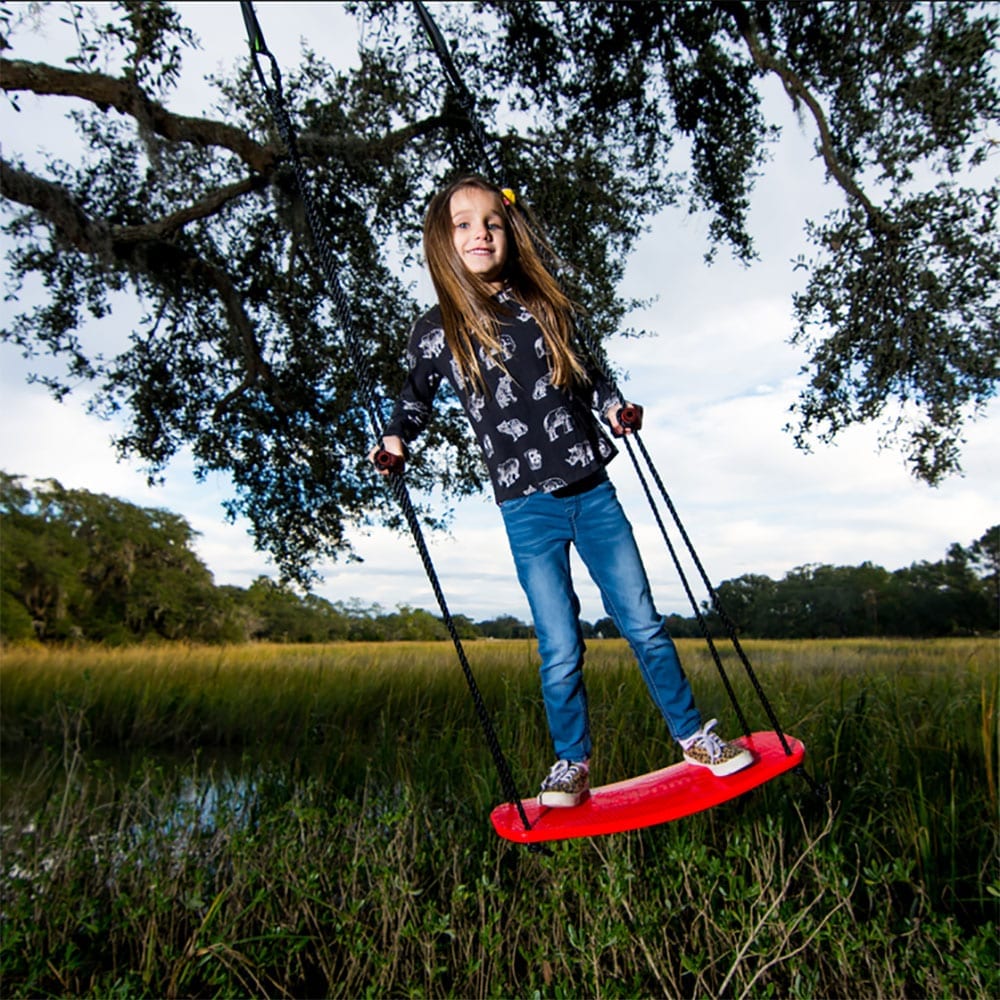 Hang it from a tree or put in on a swing set. This is a fun twist on a classic swing. Let the laughter and fun unravel, and you can also pack it for travel!