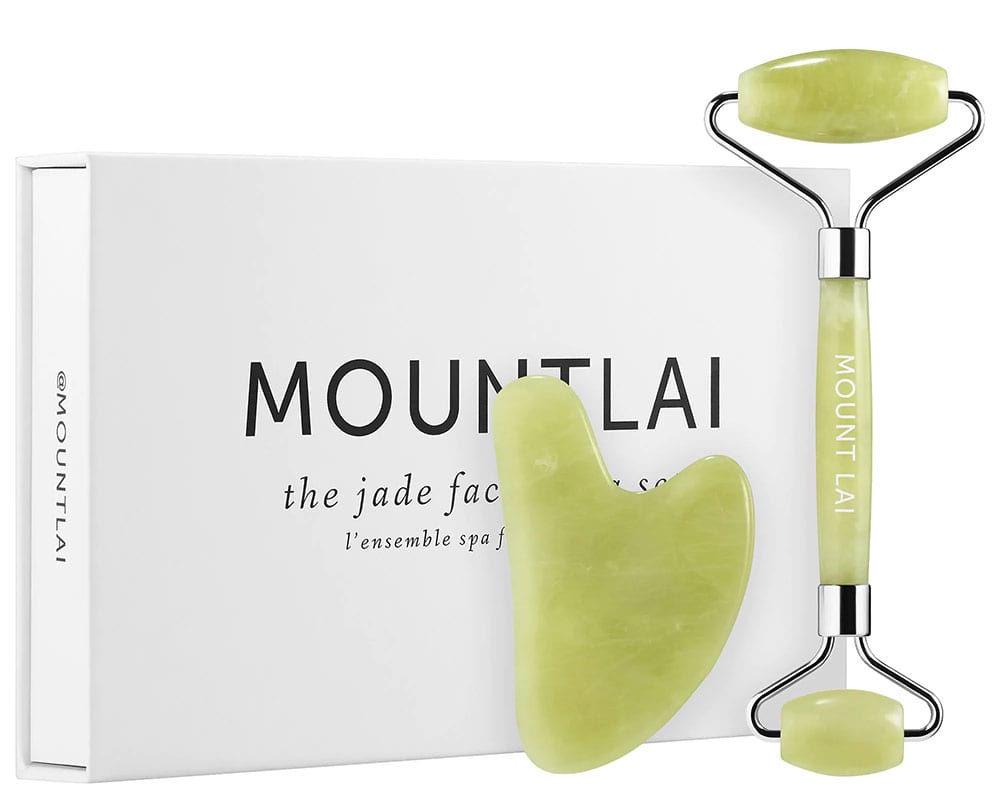 A powerful duo that depuffs, soothes and lifts the skin through the art of facial massage for a radiant glow. The Jade Face Roller has a cooling effect on the skin, promotes drainage and reduces facial tension. The Jade Gua Sha Tool aids in the lifting and smoothing of the skin, leaving the face brighter after use. Both work together to enhance your beauty rituals and pair perfectly with a serum or facial oil for better absorption. All the tools you need for a luxurious facial conveniently packaged in a giftable box.