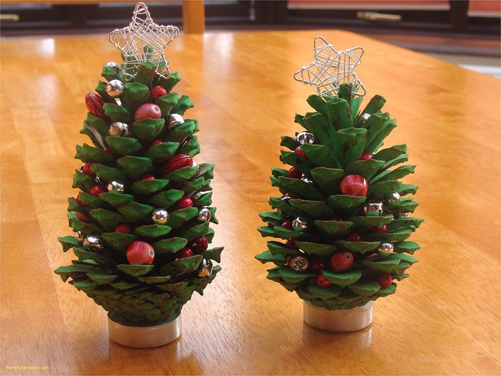 Paint a pinecone green and then glue beads around the pinecone for the ornaments.