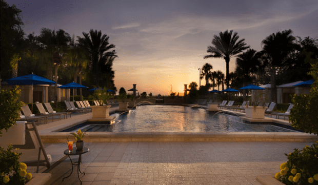 Reunion Resort features 360 resort accommodations including luxury condominiums, private villas and vacation homes surrounded by 2,300 acres of lush landscape as well as a nature preserve. It is the only location in the United States with golf courses designed by the golf greats Jack Nicklaus, Arnold Palmer and Tom Watson. The resort also features the exclusive ANNIKA Academy by Annika S renstam, elegantly appointed meeting space, a full-service boutique spa, multiple pools, slides, water playgrounds and a 1,000-foot lazy river. The resort’s hip restaurant called Eleven features a rooftop pool and nightly views of the fireworks from nearby Walt Disney World.