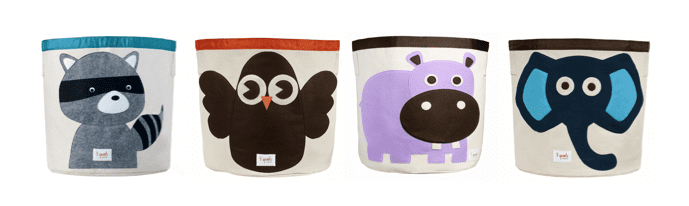 Cute! Right? “Help your kids clean up their act with our cute animal storage bins. Well sized for storing toys, books or laundry our storage bin measures 17.5″ in height and 17″ in diameter. Made of a heavy organic cotton canvas our bin is tough enough to hold whatever you throw in it but cute enough to complement the best dressed home.”