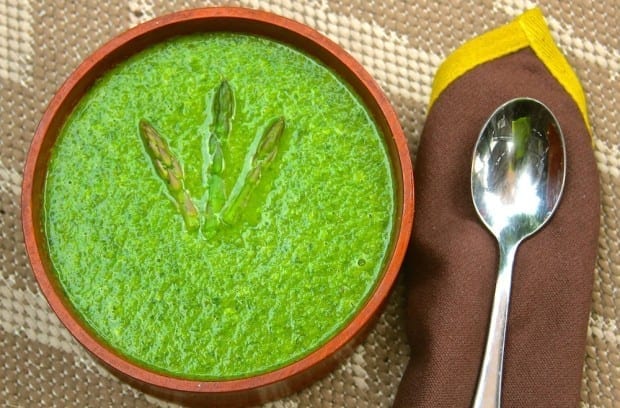 This soup requires a bit of cooking, but it’s so worth the effort. Heat a chopped onion in a saucepan with 2 tablespoons olive oil. Add 3 cups chopped asparagus and cook until soft. Season with salt and pepper. Stir in 1 cup baby spinach leaves and 3 cups chicken broth. Simmer until the vegetables are tender, and then puree in a blender. Transfer to a bowl and let cool. Chill for several hours before serving cold. Make sure you taste the soup when it’s hot versus cold so you can see the difference in flavor the temperature makes. You’ll be amazed!