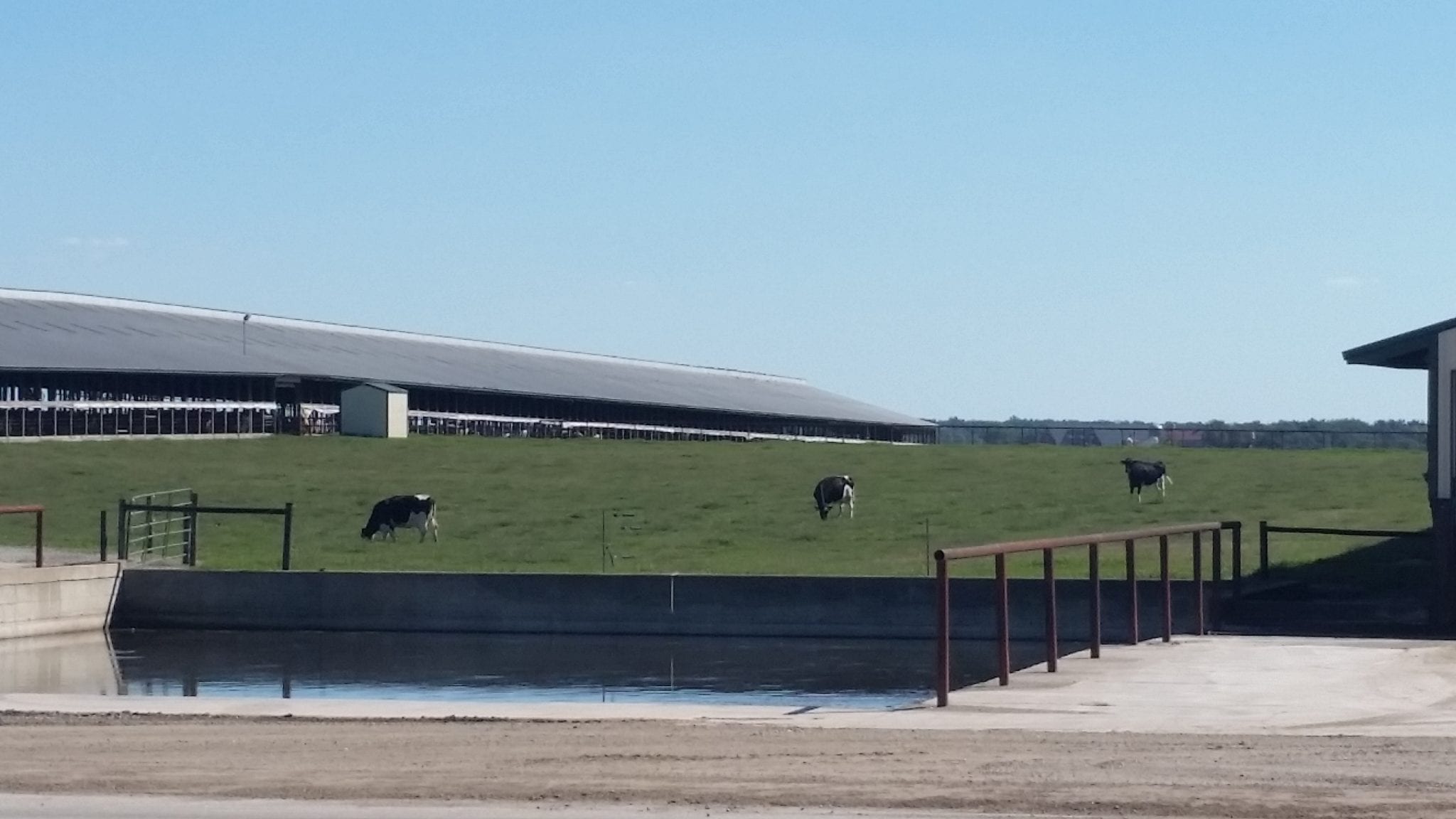 Our first stop on our tour was to a fuel station but it wasn’t a fuel station that we could use. The fuel that was coming out was Compressed Natural Gas (CNG) and it was made from cow poop! We all know that the gas cows pass is methane so why wouldn’t their poop be methane too? The McCloskey’s, Sue and her husband Mike, are very conscious of our environment and they are utilizing every way to use all the waste and byproducts that come from operating a farm for a cleaner America. They convert their cow ma-nure into methane to power our dairies and then turn it into Com-pressed Natural Gas to fuel our fleet of 42 CNG powered tractor trailers. This one critical innovation eliminates 12 million miles of fos-sil fuel emissions annually.
