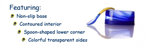 The Baby Dipper has a contoured interior that guides the food to the spoon. It also has a non-slip base that helps to prevent sliding around. (bonus for one-handed feedings!)