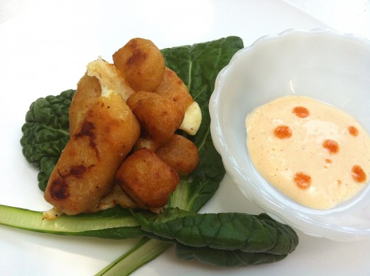 Beer & Pancake Battered Cheese Curds w/ Tabasco Horseradish Dip