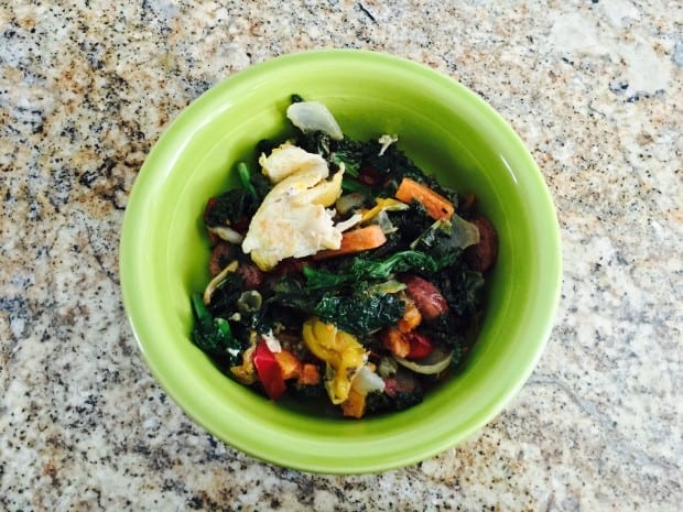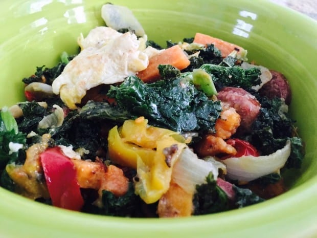 The carefully balanced sweet and savory flavor of sweet potatoes together with the tender saut ed kale and hearty sausage & egg make this this perfect weeknight meal option.