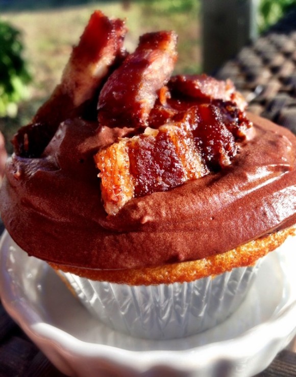 Frost cooled cupcakes and topped with remaining chopped bacon. Enjoy!