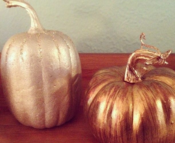 Spray paint mini-pumpkins for a fun metallic look. Love mixing and matching. Image uploaded via http://instagram.com/moderndaymoms.