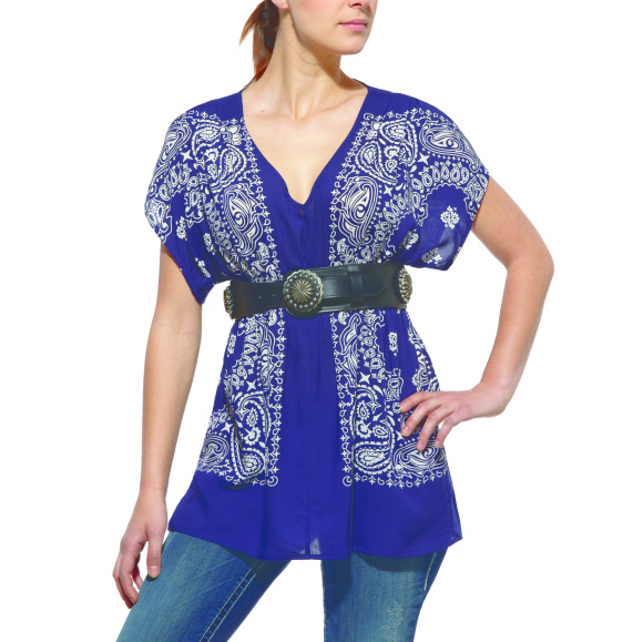 Bandana Printed Tunic, $49.95 Modern styling meets country classic, the Bandana Printed Tunic pairs well with shorts or can be sported over a swimsuit as a playful cover-up.