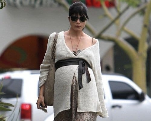 The radiant mum-to-be, 31, walked the blue carpet in a $265 dalmatian print coat by Hobbs, accessorized with a black fascinator and black heels.