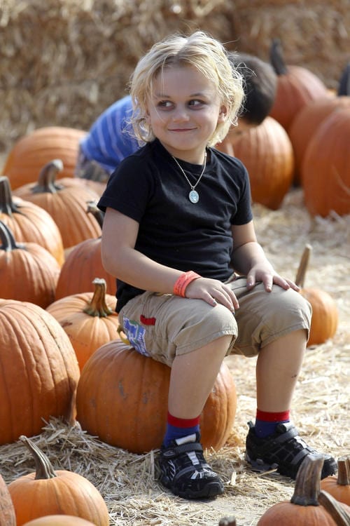 The Rossdale brothers, who were dressed as draculas, had a blast jumping around the bouncy castle, riding the train and picking out the perfect pumpkins.