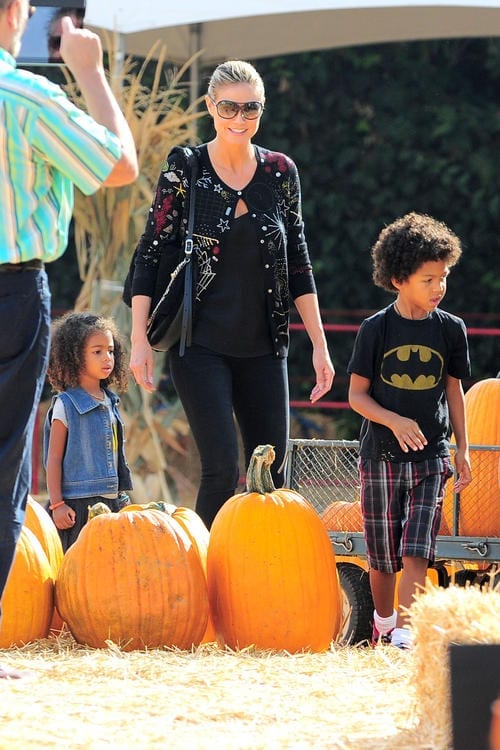 Joined by her new beau, and longtime bodyguard, Martin Kristen, Heidi helped as her daughters Leni, 8, and Lou, 3, and sons Henry, 7, and Johan, nearly 6, picked out their perfect pumpkins. Topping off a fun-filled outing, the kids and their mom all took a turn on the giant slide before leaving.