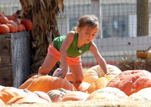 Little Teddy seemed to be having a blast as he picked out pumpkins with mom and dad and then braved the big bouncy slide all by himself.