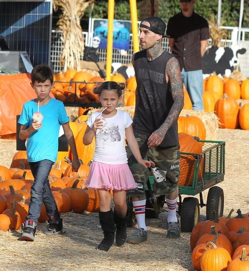 Rockstar papa Travis Barker stepped out with his children – Landon, 8, and Alabama, 6 – at Mr. Bones Pumpkin Patch in Beverly Hills, Calif. on Thursday, October 18.