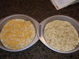 STEP 2. Punch dough down. Divide in half. Press each into a greased 9-inch pie plate. In a small bowl, combine melted butter and seasonings; brush over dough. Sprinkle with cheese. Prick dough several times with a fork. Cover and let rise until doubled, about 30 minutes.