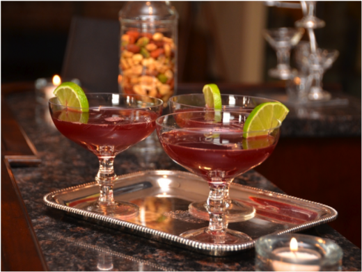 Christmas is right around the corner and what better way to celebrate than with a little MistleTOE Cosmo. This delicious drink has a fruity mixture of boysenberry, cranberry and fresh lime.