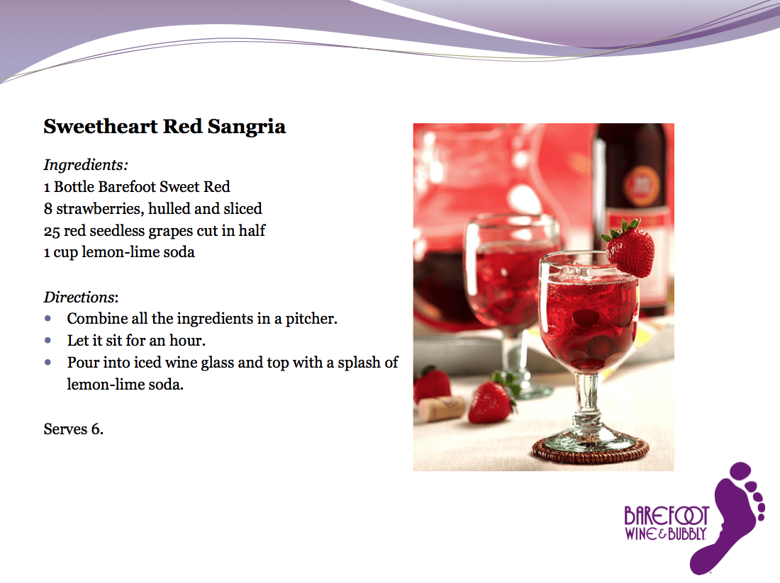 Since it’s almost Valentine’s Day, we thought we would share a delicious Sangria recipe with you. This one features Sweet Red wine from Barefoot Wine & Bubbly.