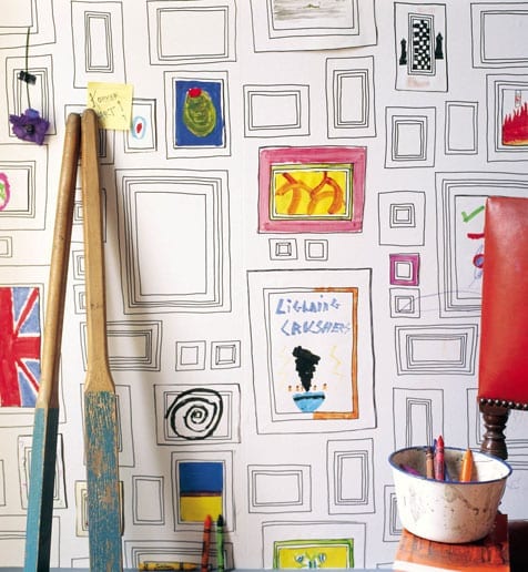 Frames black-and-white wallpaper by Taylor and Wood, $45 a roll; grahambrown.com
