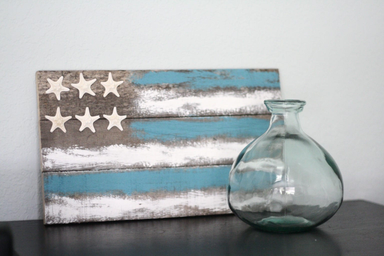 This is such an easy DIY that anyone can do it. All you need is some pallet wood, paint, screws, glue and mini-starfish. This decorative piece can be a festive way to decorate for the 4th of July without straying away from the color scheme in the house. Think outside of the box! The flag doesn’t have to be red, white and blue.