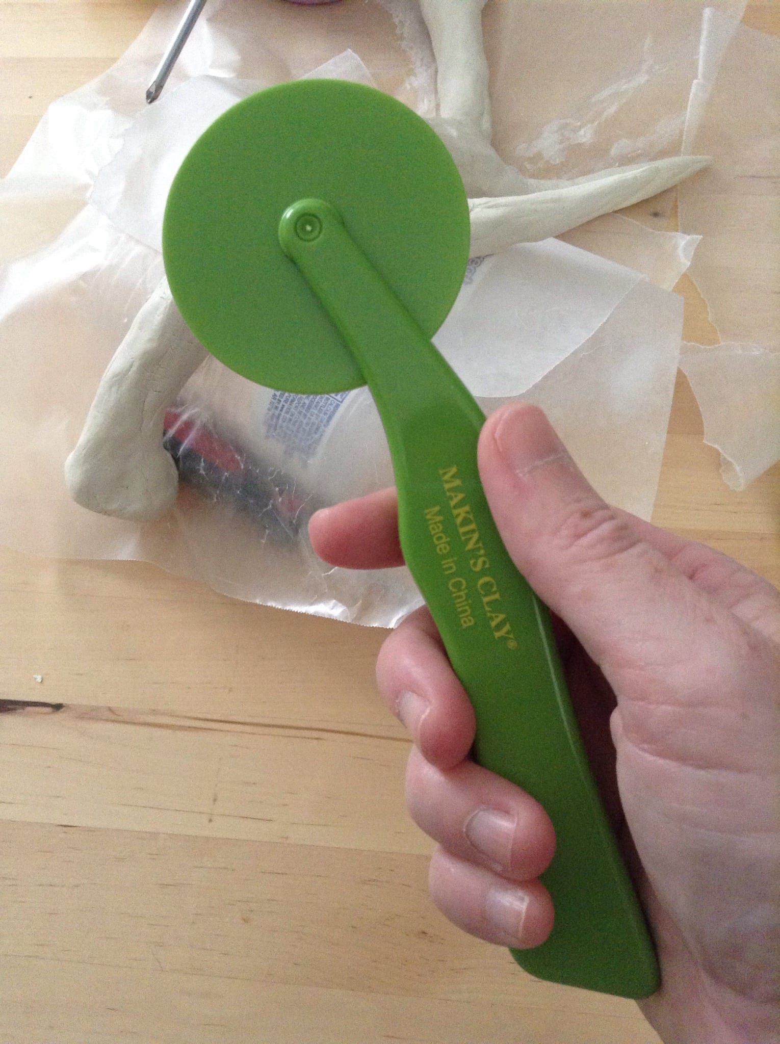 The tools I needed were air-dry clay (it’s a favorite with us and our kiddos around here) and a handheld roller wheel. You could even skip the wheel and use something like the tip of a paper clip.