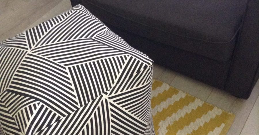 Here is another easy DIY for those of you looking to spice up a certain space in your home. I’ve seen many poufs that I love, but some were so costly. My next pouf will be a gold one, but for now, I made one with an interesting geometric design. I chose a heavier fabric since this will be used in the floor and for sitting on or propping your feet on. So, with that, I bought some heavy duty thread as well. The fabric and thread were purchased at Joann Fabrics. The fabric is a Nate Berkus design. I had no idea they were going to be carrying his stuff, but I am excited that they are! There are several other fabrics of his that I plan to purchase and use for the same reason. These poufs are going in my son’s room because they are a young and fun design.