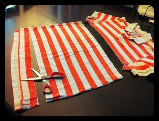 Grab a large t-shirt, the larger the better. Lay it flat on a table. Using fabric scissors, cut a straight line across the shirt right beneath the arms. Next cut the seam off the bottom of the shirt. Take the middle piece and using your arms {or legs} stretch it out as far as you can. Say hello to your new infinity scarf/cowl!!! I already cut up a few shirts and stretched the heck out of them before I decided to take a “how to” pic, so, excuse the polo collar… even though it still makes a wonderfully fantastic cowl.