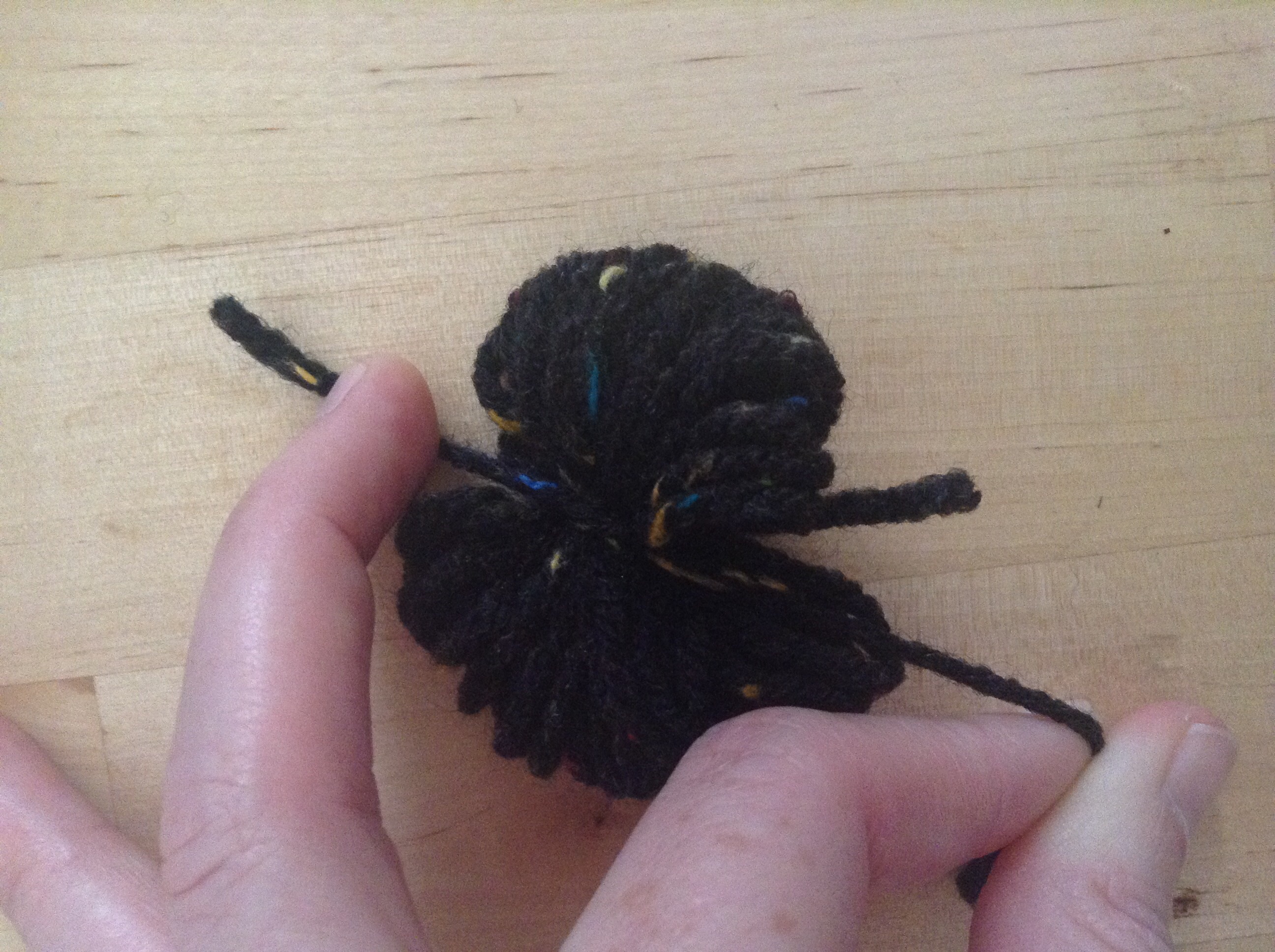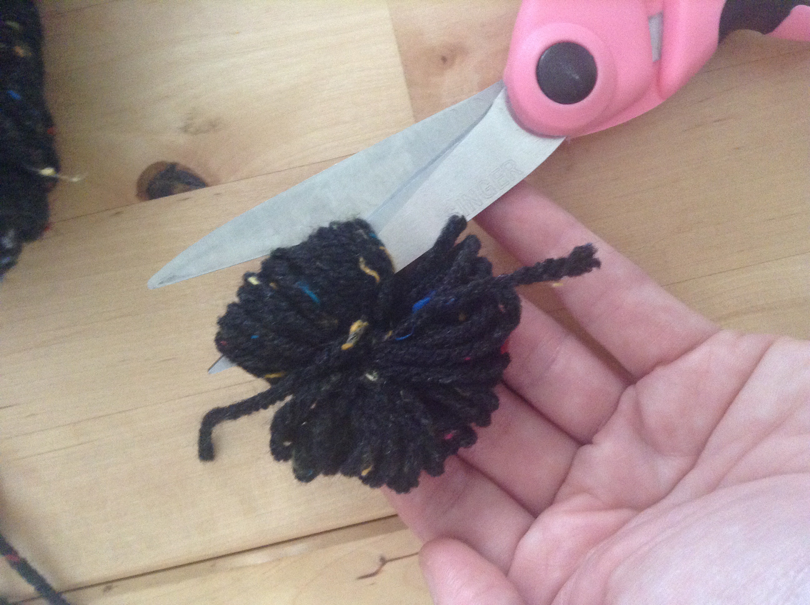 Finally, trim the tops of your poms so that they are evenly rounded, like trimming hedges.