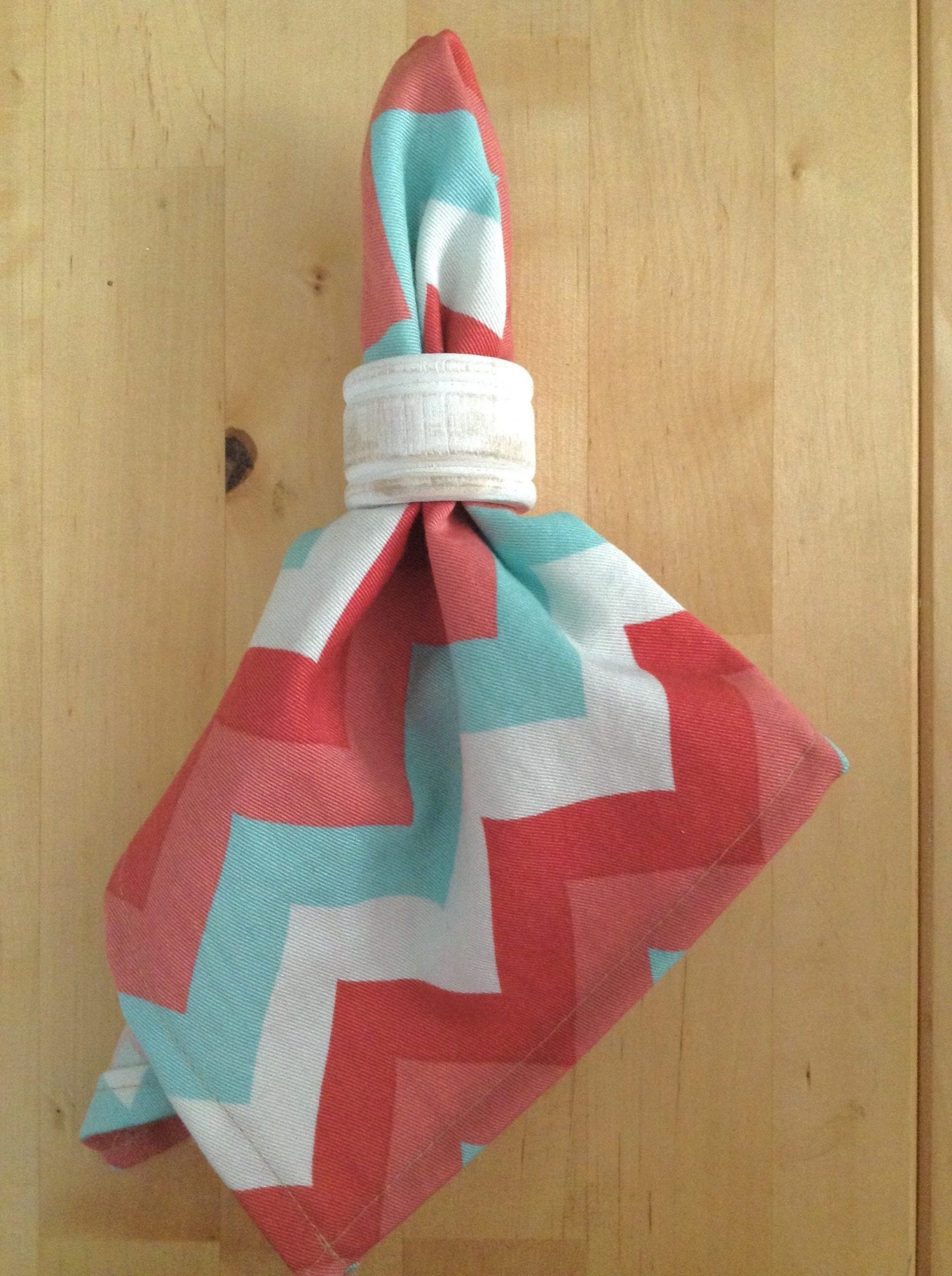 I also made the cloth napkins by cutting it 20″ X 20″ then ironing each end at 1/4 inch seam and turned under twice to create a finished edge.