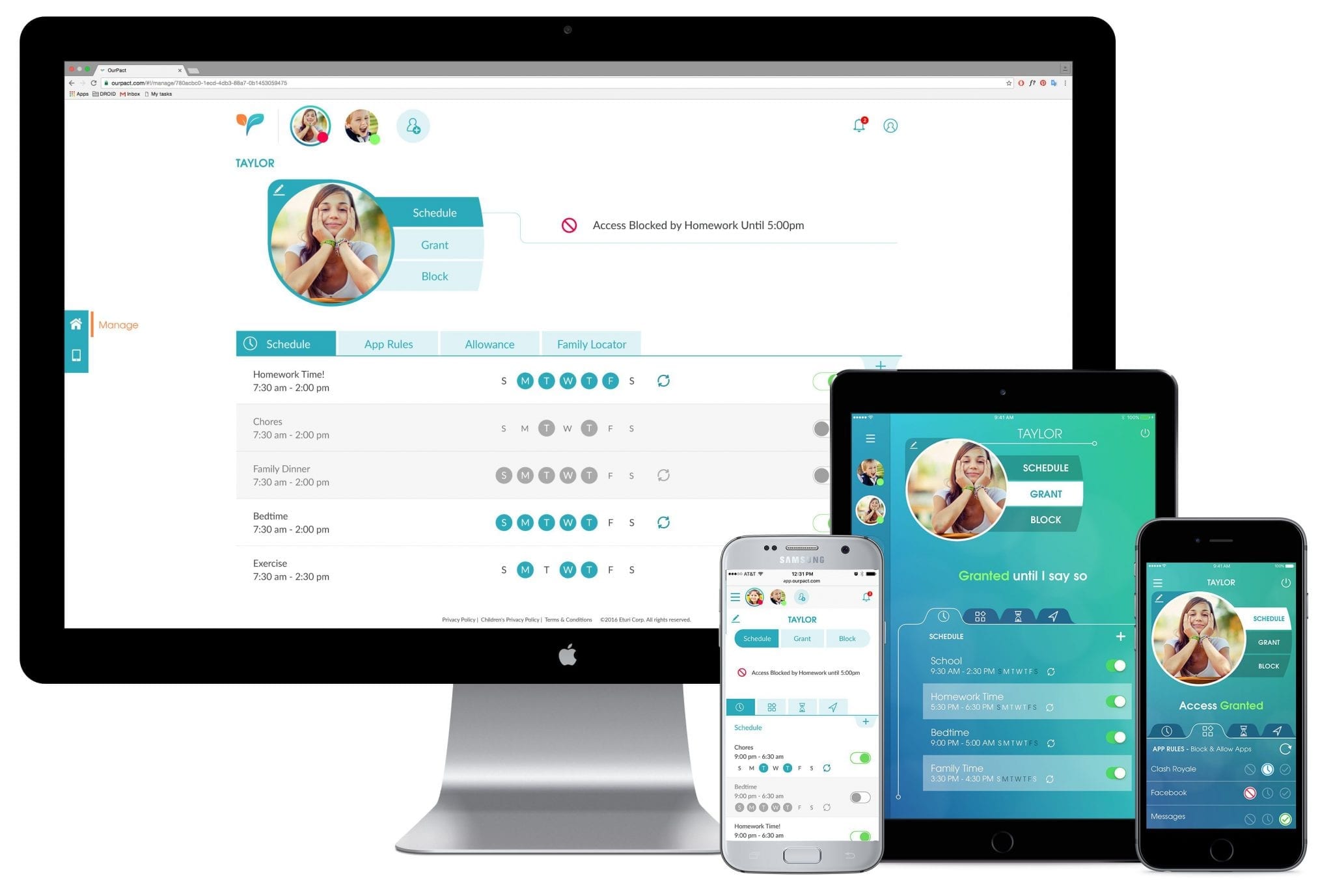 Parents can log in to the OurPact Web App to manage any Android smartphone or tablet.