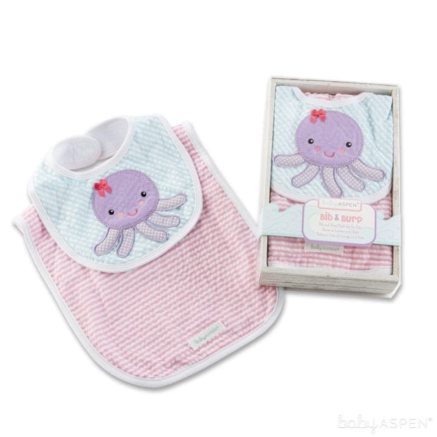 Baby Aspen Girls Deep Sea Octopus Bib and Burp Cloth Gift Set