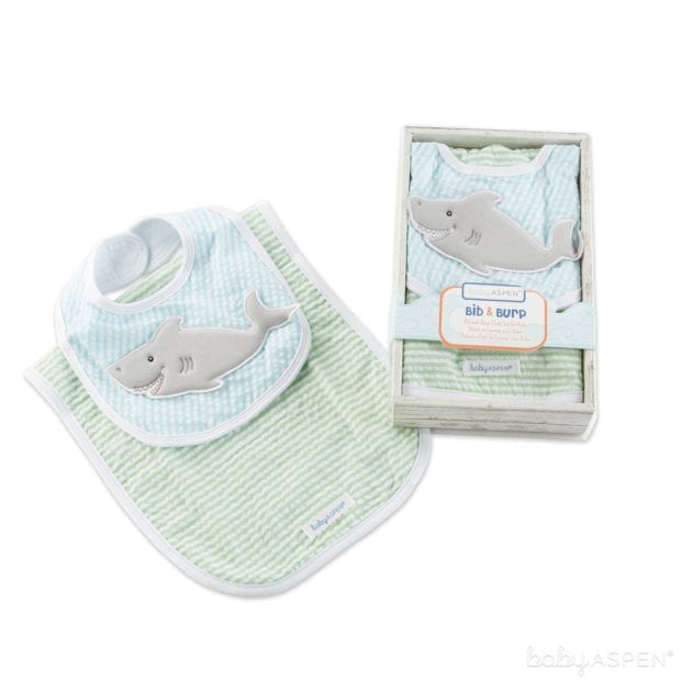 Baby Aspen Boys Deep Sea Shark Bib and Burp Cloth Gift Set