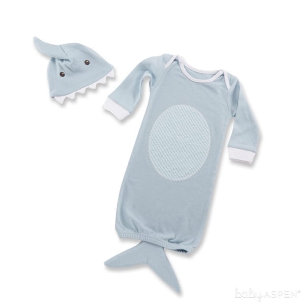 Baby Aspen Boys 2 Piece Blue Shark Gown and Cap Gift Set