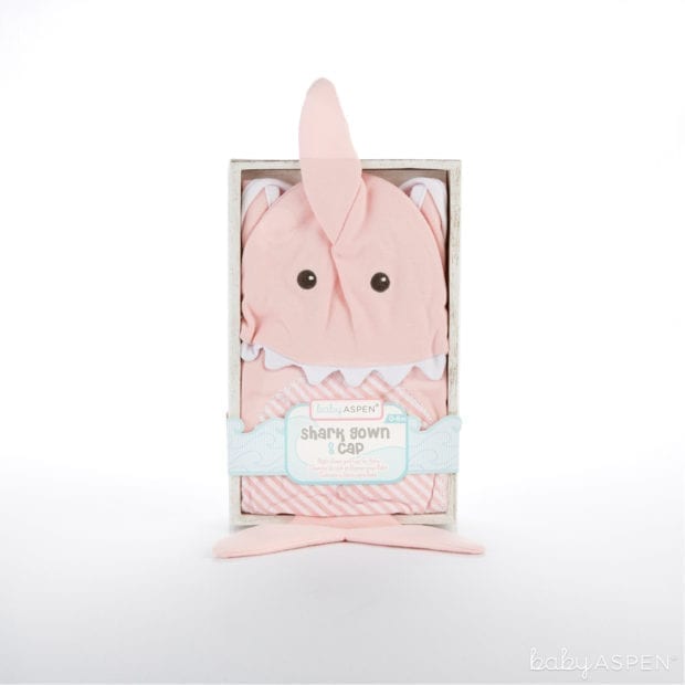 Baby Aspen Girls 2 Piece Pink Shark Gown and Cap Gift Set