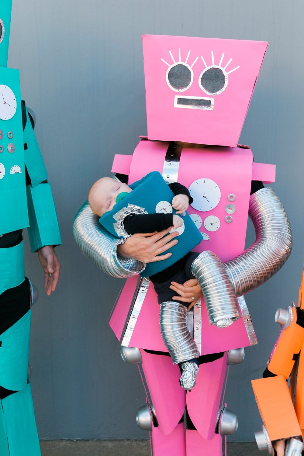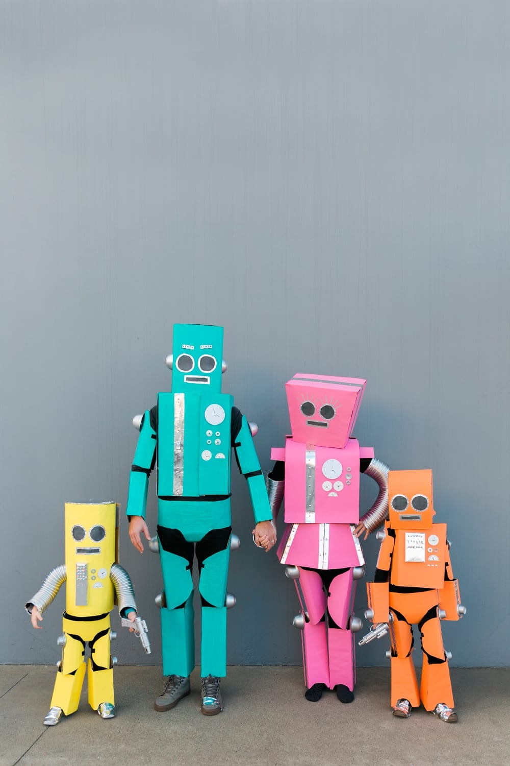 Are you into robots? Is your little one really into outer space or the future of droids? Then a family of robots is the perfect theme for your Halloween costumes! Plus, robots are very simple to do. That saves you time and makes your whole family happy.