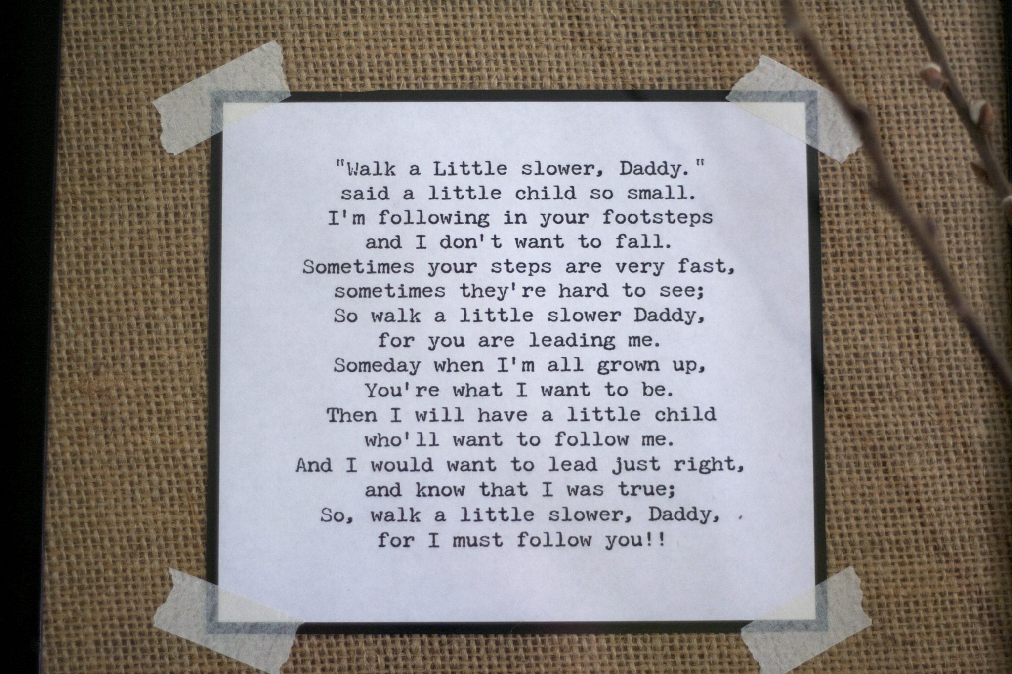 All you need to do is print out your poem with a border. I chose a typewriter font. You could also use a child-like font if you want to make it look more child-like.