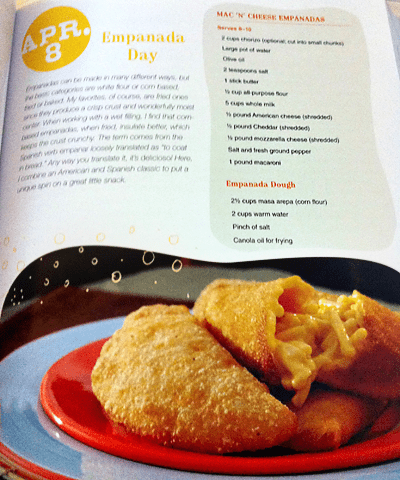 If you have tons of cookbooks and are kinda bored of the same old thing, you can pick up a copy of Food Fest 365! which features actual National Food Holidays and recipes to accompany them. My favorite would have to be April 8th: Empanada day. The featured recipe for this day is Mac N Cheese Empanadas and they look delicious!