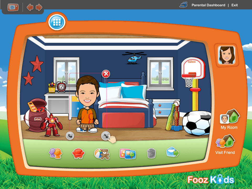 – Kids can express themselves by creating their own avatar and virtual room.