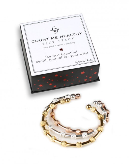 Chelsea’s Count Me Healthy bracelets feature gorgeous movable beads that help women, particularly moms, keep track of daily goals.
