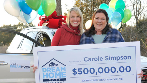 Former Marine Carole Simpson was feeding her two dogs at her home in rural Columbia, Tenn., when she heard the knock at her front door. Moments later, Simpson learned she is the winner of the HGTV Dream Home Giveaway 2013, a grand prize package worth more than $2 million, and including a fully furnished home on Kiawah Island, S.C., a new GMC Acadia Denali and $500,000.
