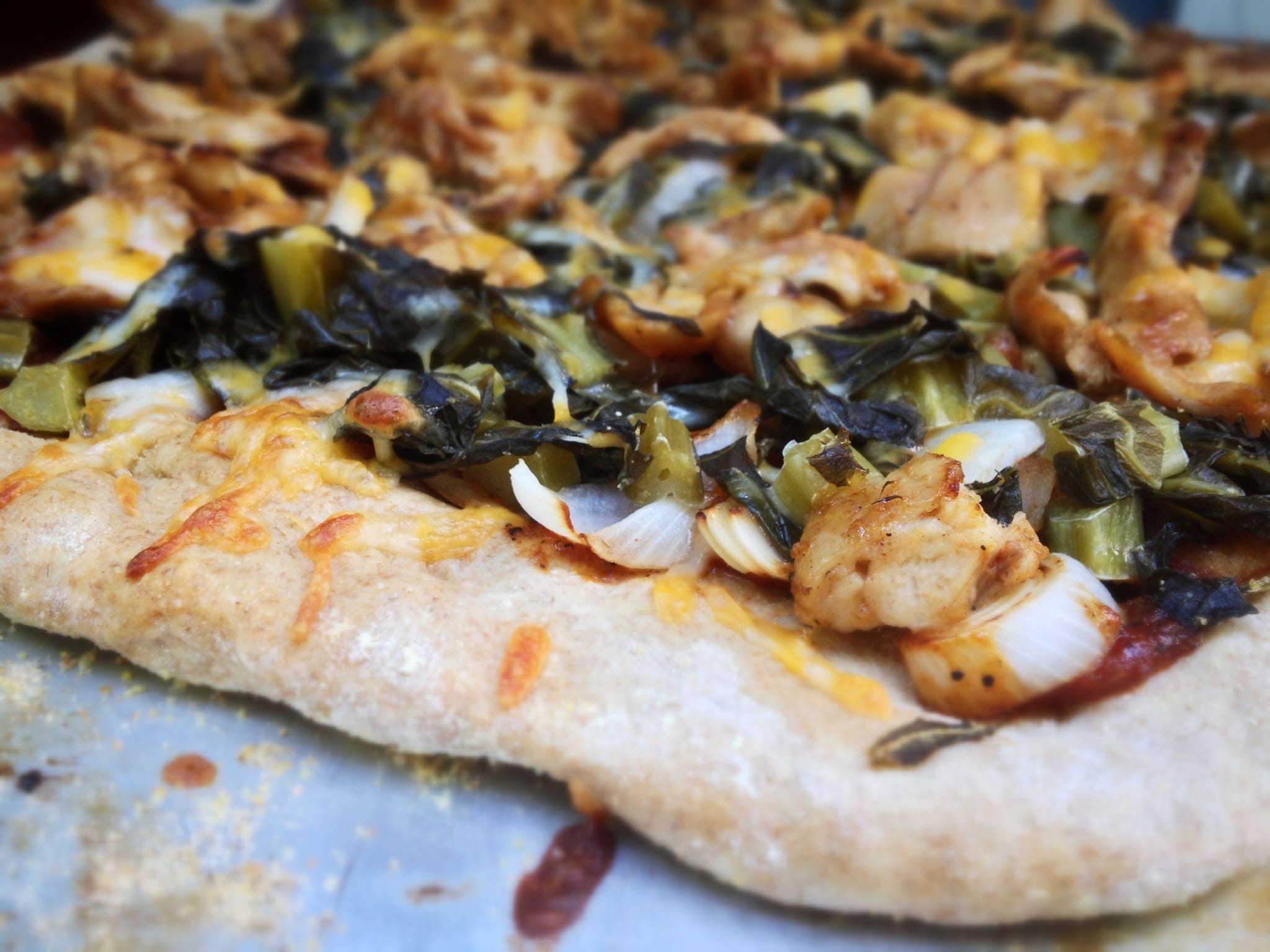 Place the gluten-free tortilla on a baking sheet/pan, add marinara making sure to spread evenly on crust, followed by cheese, onions, peppers and steak.