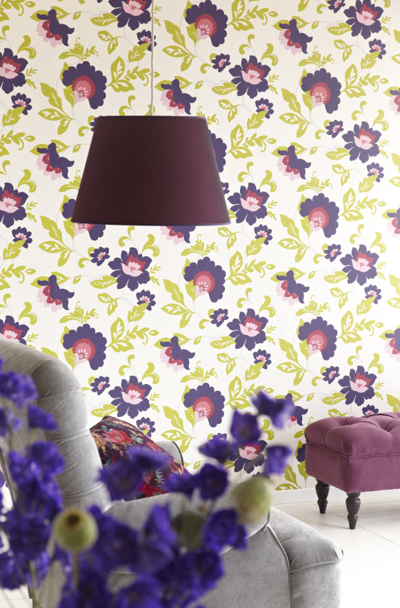 If the idea of Radiant Orchid triggers visions of languid afternoons spent reading in the garden, then capitalizing on a floral theme is a fitting decorating strategy. Turn any unused space, such as a tucked away corner or empty nook, into an idyllic retreat where you can unwind. The Gretel Cream Vivid Floral wallpaper from the Eijffinger Fleurique collection by Kenneth James for Brewster Home Fashions is an ideal choice because it features fresh pops of purple in a vintage-inspired floral design. Complement the shimmery wallpaper with white vases filled with fresh flowers and a lady-like chair that will make afternoons feel incredibly luxurious.