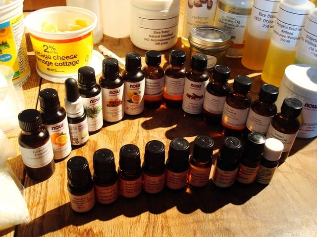 Combine 1 cup of body oil with 2 cups of Epsom or sea salts or organic cane sugar (depending on how fine a grain you like).