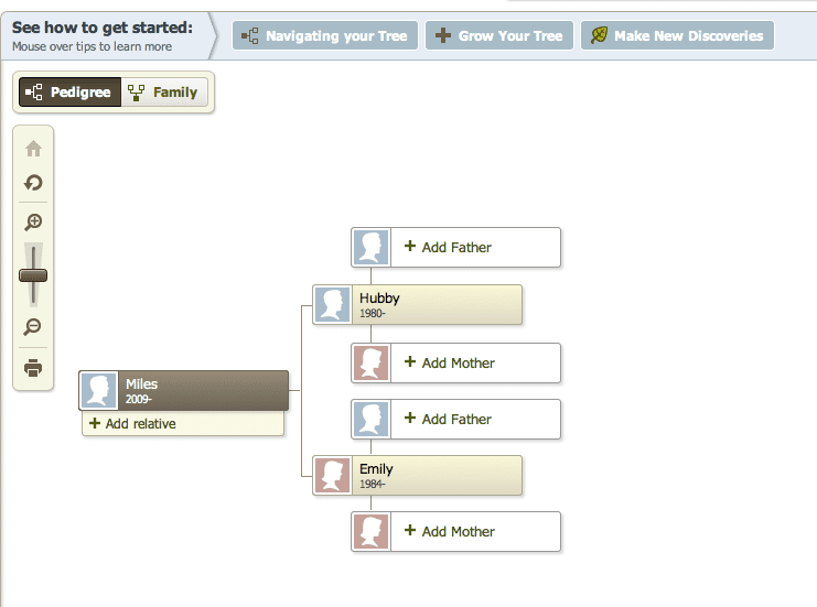 Once I had a few names, I started filling in Miles’s Family Tree: