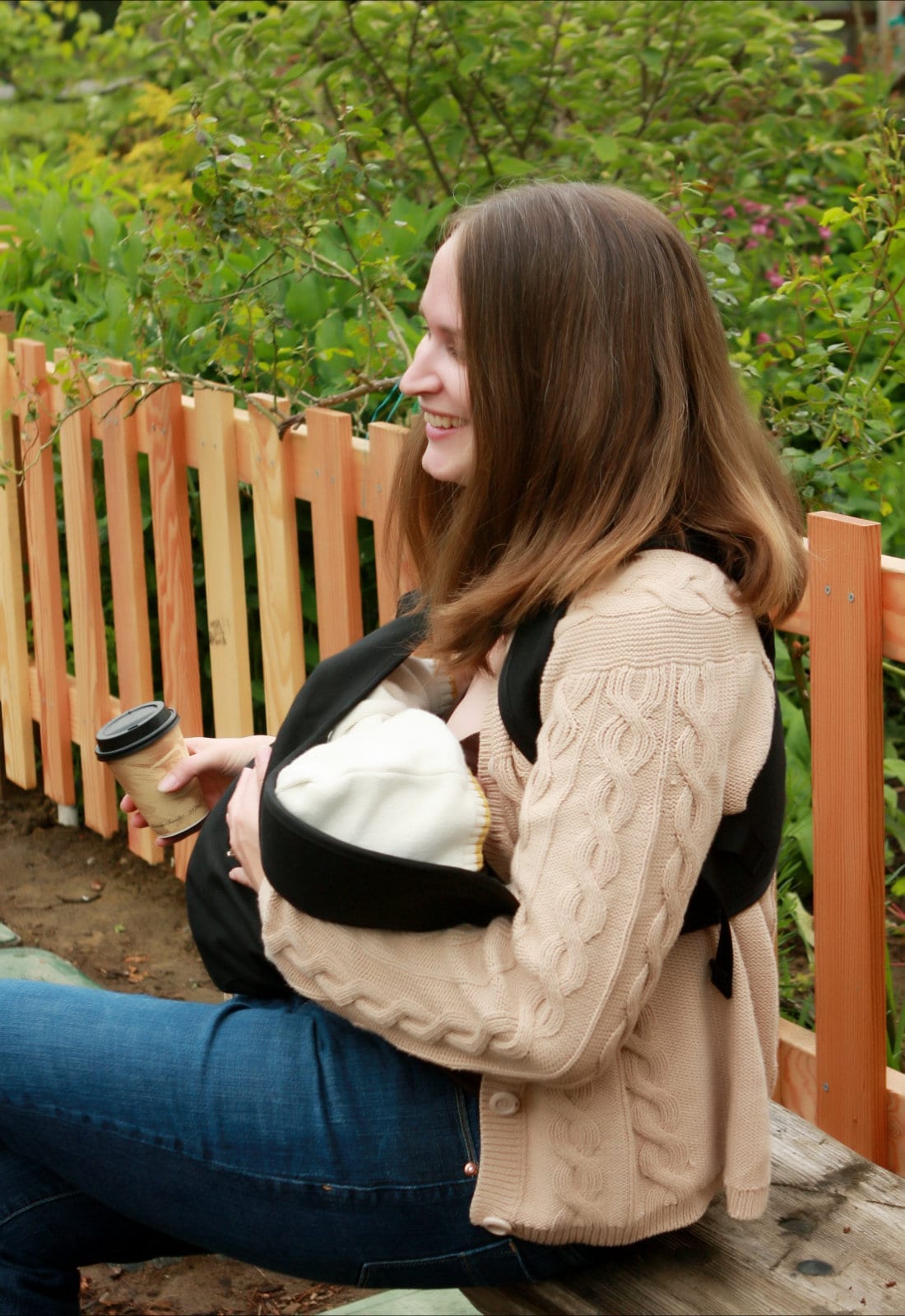 Note: This is not considered a baby carrier. This is a hands-free nursing pouch.
