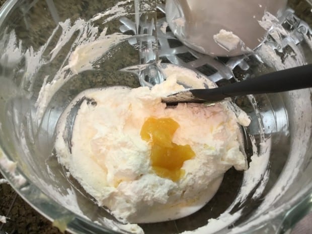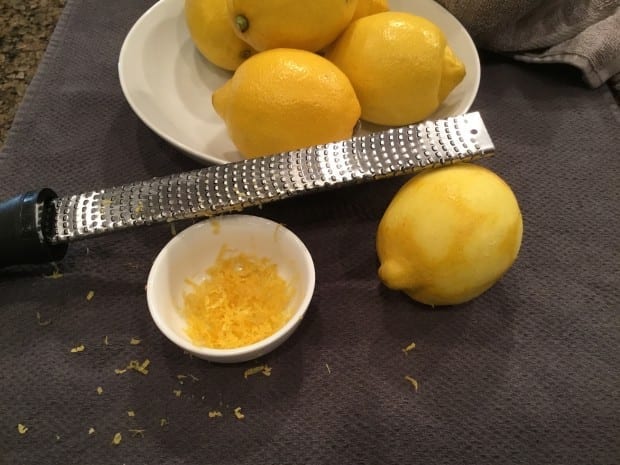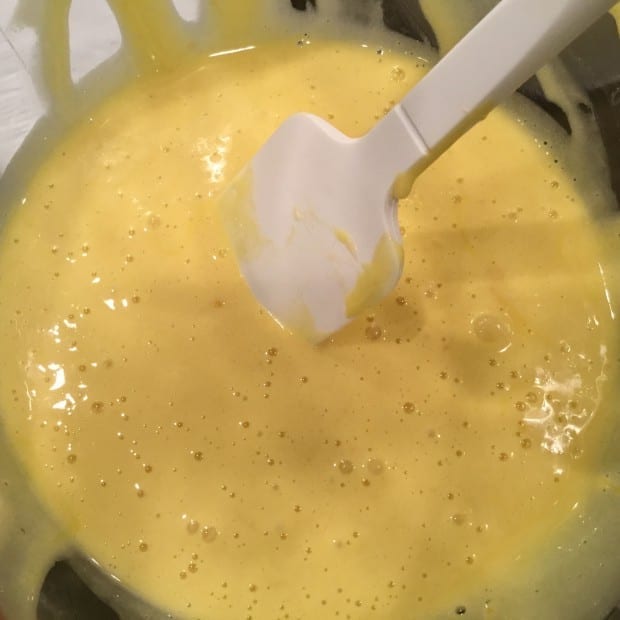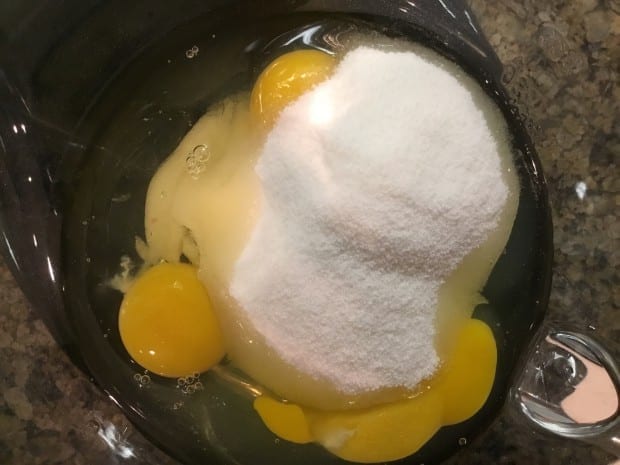 - Beat eggs and sugar together for 1 minute, add lemon juice, and zest.
