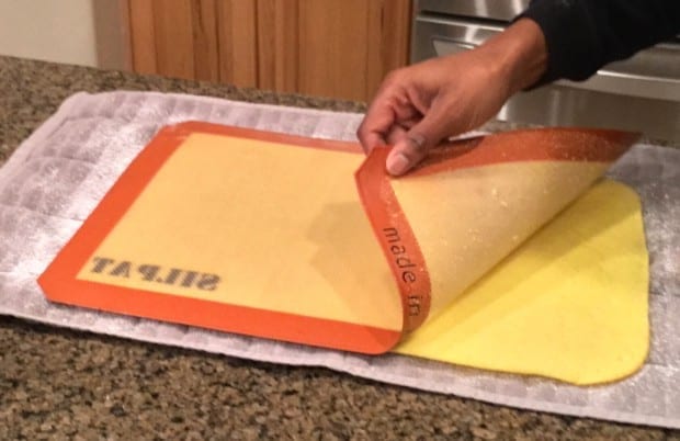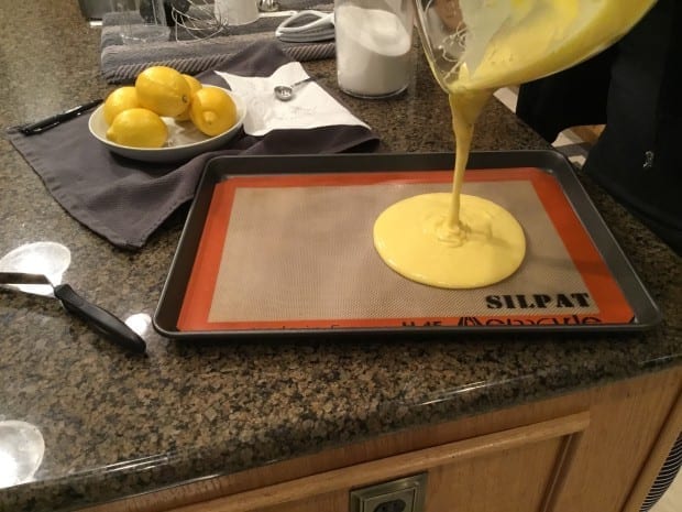 - Preheat oven to 350 degrees. Line a jelly roll (10×15″) pan with a Silpat or parchment paper